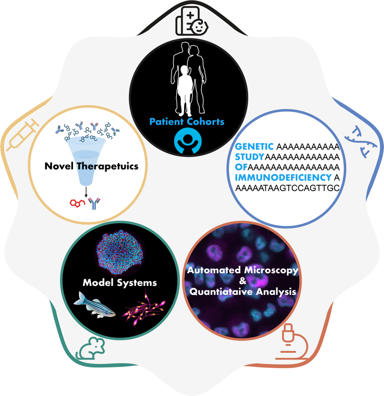 Primary Immunodeficiencies (PID), are inborn errors of immunity (IEI) in which part of the immune system is not functioning properly, often with persistent, recurrent, or fatal infections in children. IEI may present with a life-threatening multisystem inflammatory disease termed hemophagocytic lymphohistiocytosis (HLH). Despite the central role played by impaired lymphocyte cytotoxicity in HLH, target cells and macrophages are not passive bystanders1. This is especially true for a novel PID we described, that is associated with the helicase ZNFX12. In the previous phase, we successfully developed a high-throughput imaging platform to characterize ZNFX1-deficiency on the molecular and cellular level3. We will next focus on understanding and modulating macrophage activation. Macrophages can be activated by extrinsic factors such as genetic defects in cytotoxicity (dysfunctional killer), or intrinsic factors such as immune response defects (hyperactivated target). The latter can be pathogen-triggered, or it can be an autoinflammatory response. Using a plethora of in-vitro and in-vivo model systems, we aim to differentiate between the molecular signature of macrophage activation in the presence or absence of a monogenic defect in cytotoxicity and identify novel immunomodulatory molecules in the context of macrophage activation in PID.